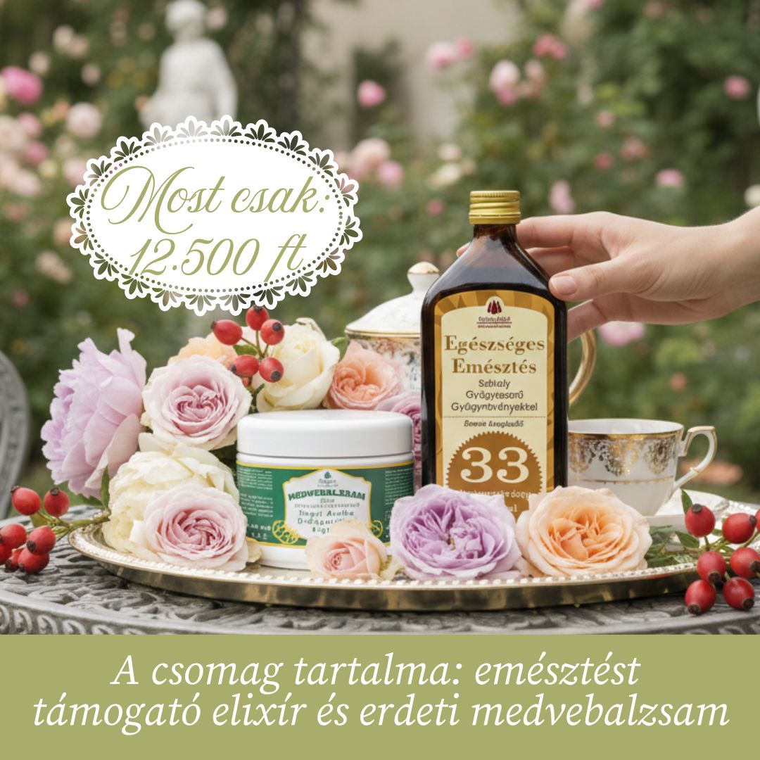 Lepje meg magát vagy szeretteit a szeretet és törődés ajándékával. Ez a csomag a belülről fakadó kényelem és a fizikai komfort tökéletes párosa: az Egészséges Emésztés – Székely Gyógykeserű segít a gyomor és bélrendszer nyugalmában, az EREDETI Medvebalzsam pedig a mozgásszervi területek regenerációját és kényelmét támogatja.